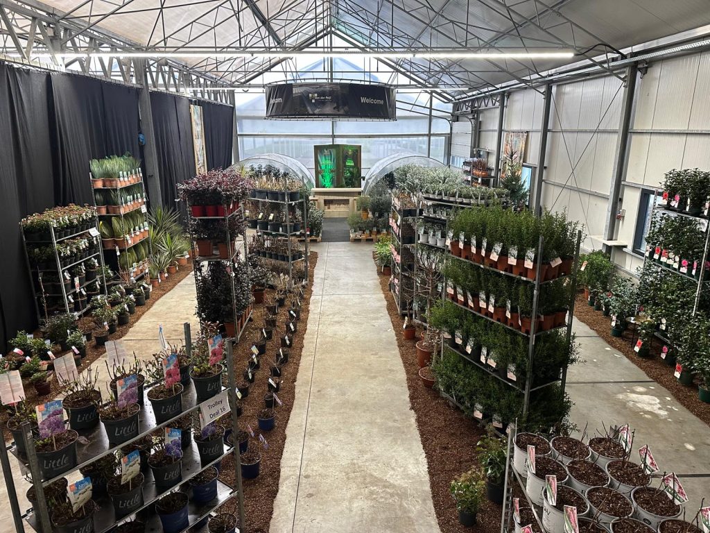 Abelia, Acer, Andromeda, Buddleja, Callistemon, Camellia, Choisya, Euonymus, Gaultheria, Hebe, Hydrangea, Leucothoe, Pieris, Rhododendron, Skimmia, Viburnum, Nandina, Calluna, siergrassen en dwergconiferen.